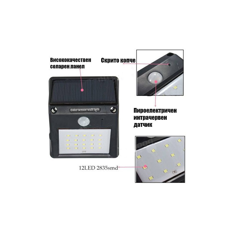 Сензор за движение: 2 интелигентни режима на осветление: слаба светлина в нормален режим; и по-ярка светлина в режим на сигурност, когато се установи движение в рамките на 3 метра или ъгъл от 120 градуса