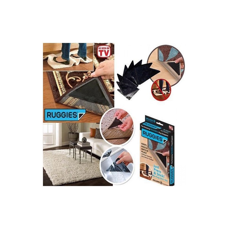 •        Ruggies са малки силиконови триъгълници изработени , така че да придържат вашите килими и пътеки към плъзгащите ви подови настилки, без да оставят каквито и да било остатъци по настилката.