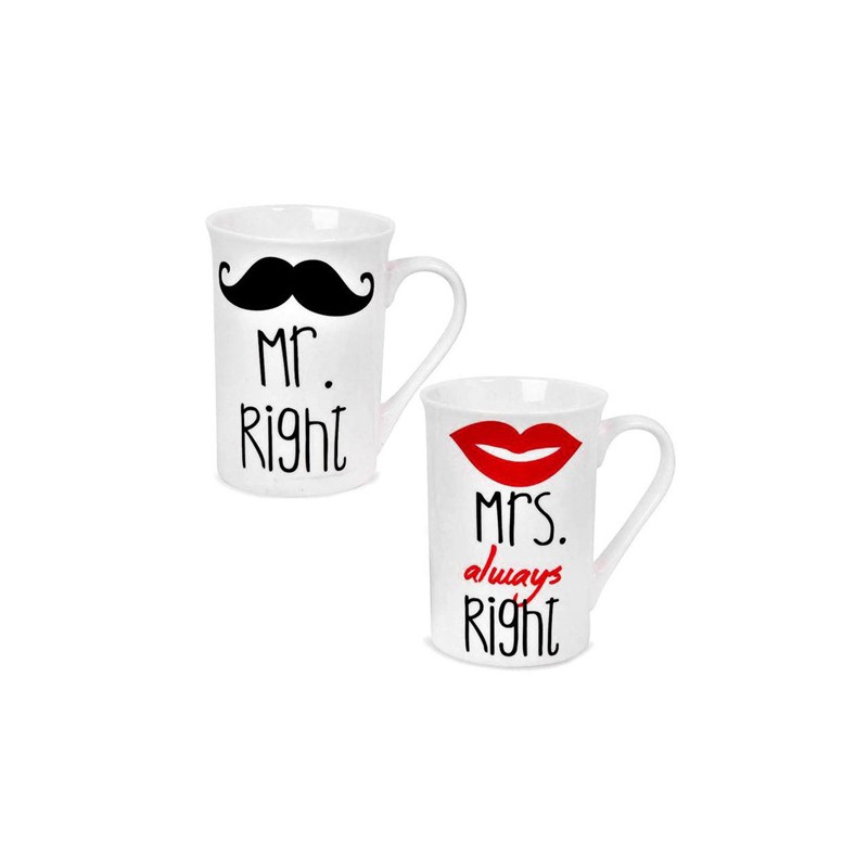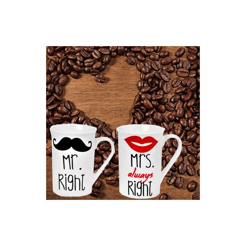 Красив комплект чаши за двама Mr.Right and Mrs. Always Right, в който ще пиете сутрешно си кафе с любимият човек с удоволствие.