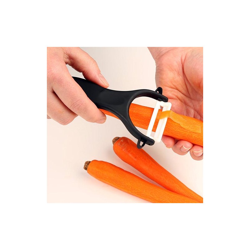 Ножът и белачката са изработени с керамично покритие, което се почиства бързо и лесно.