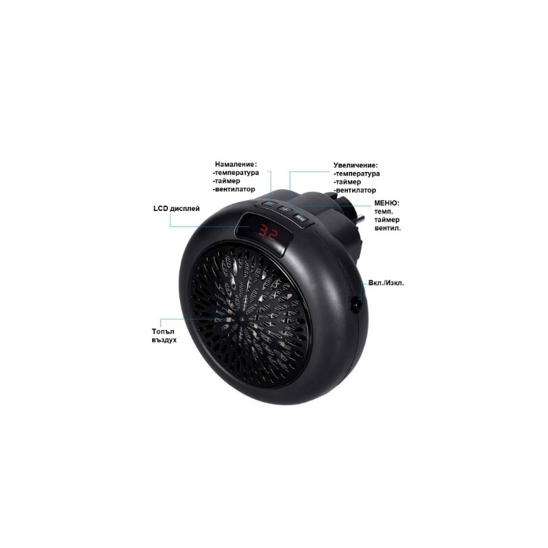 ВАЖНО: при натискане на бутона за изключване уредът работи 1 минута, за да охлади керамичния елемент. Не е правилно изключването директно от контакта.