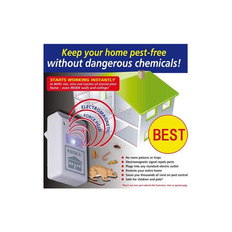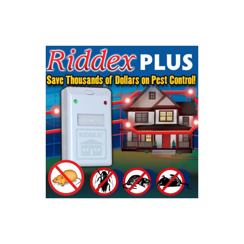 - Riddex Plus Ултразвуков уред, който атакува вредители (комари, мишки и др.), причинявайки им дискомфорт и принуждавайки ги да напуснат зоната му на действие (приложим за помещения не по-големи от 70 до 95 кв.м.)
