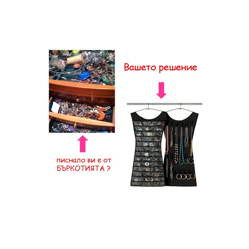 • Малка черна рокля органайзер за бижута с който ще облекчите живота си.