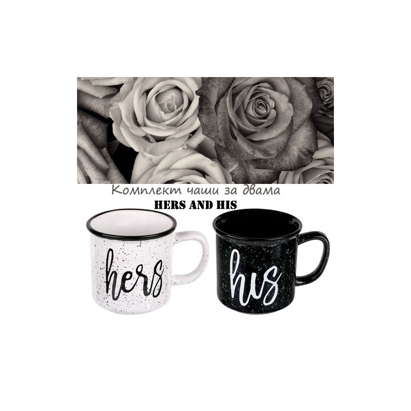 Красив комплект чаши за двама Hers and His, в който ще пиете сутрешно си кафе с любимият човек с удоволствие.
