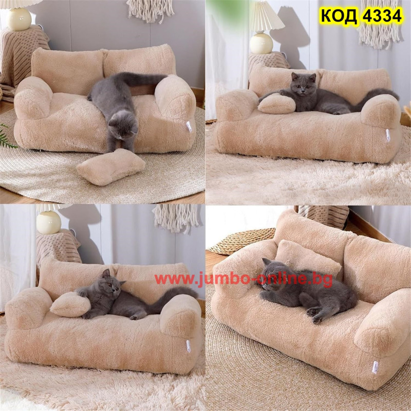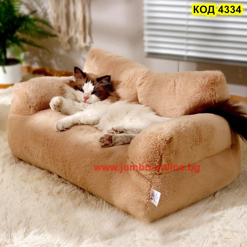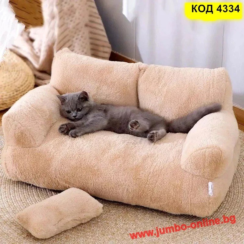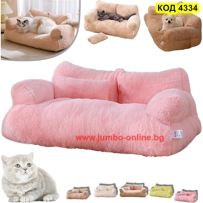 Осигурете на вашия домашен любимец уют и комфорт с това легло за котка или куче с форма на диван. Със стилен и практичен дизайн, то съчетава елегантност и функционалност, като предоставя на вашия любимец специално място за отдих и релакс. Мекото плюшено покритие осигурява топлина и комфорт, докато пълнежът от PP памук гарантира опора за тялото, като се адаптира към всяко движение на вашия любимец.