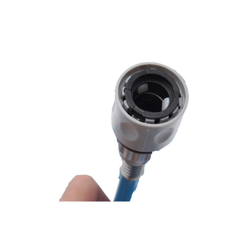 Веднъж закачен маркуча за крана с адаптера и регулатора на налягане, водата циркулира през него до четката.