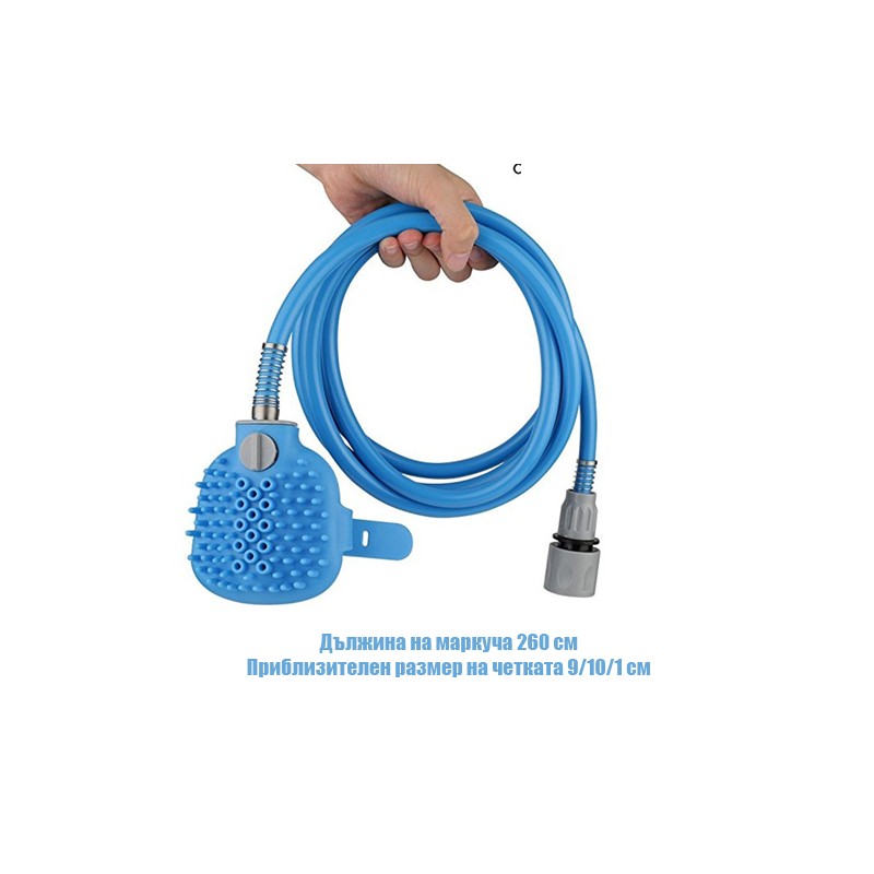 Маркуч с вградена четка за масажиране и измиване на животното