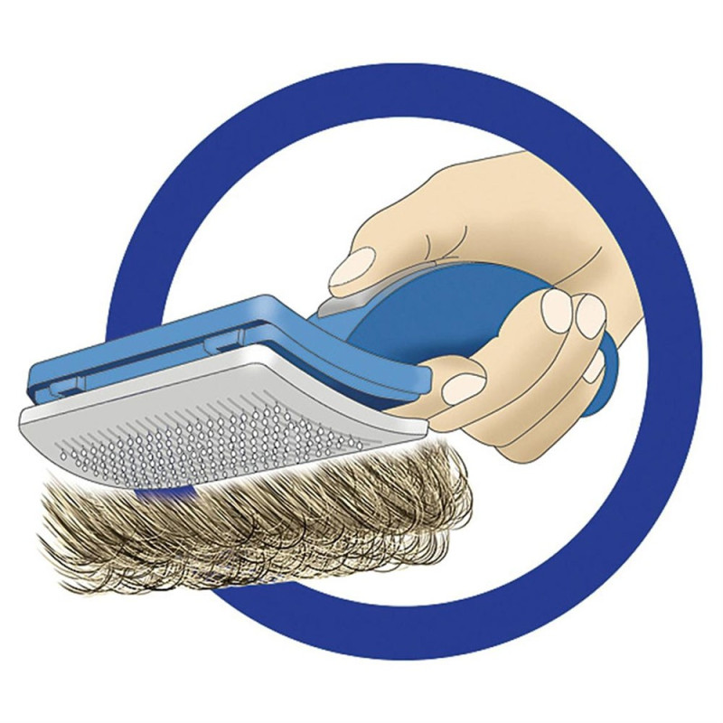 Само с едно натискане на бутона, в горната част на четката, се активира избутващият панел, който премахва всички косми от повърхноста ѝ.