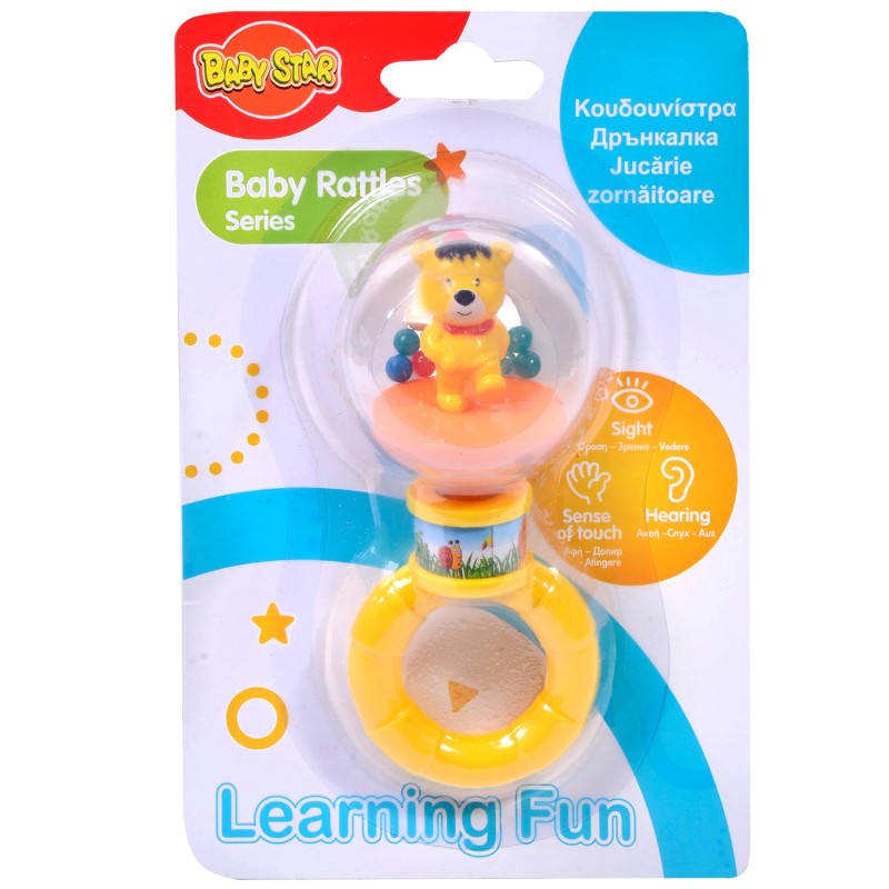 Формата и размерите на пръстена са удобни за хващане от бебешките ръчички, а мечето ще привлече вниманието на бебето и ще развие неговото цветоусещане.