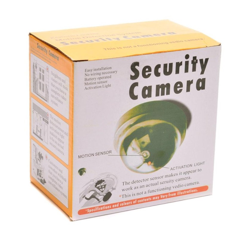 Бутафорна куполна камера подходяща за външно или вътрешно монтиране. Камерата имитира заснемане посредством ярка, червена, мигаща светлина. Идеална за повишаване на вниманието и всяване на смут в потенциалните нашественици на дома.