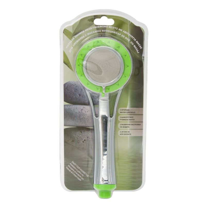 Ръчна душ слушалка, изработена от висококачествена пластмаса с релаксираща масажна функция и 3 ралични настройки на водата, за да се насладите пълноценно на вашия душ.