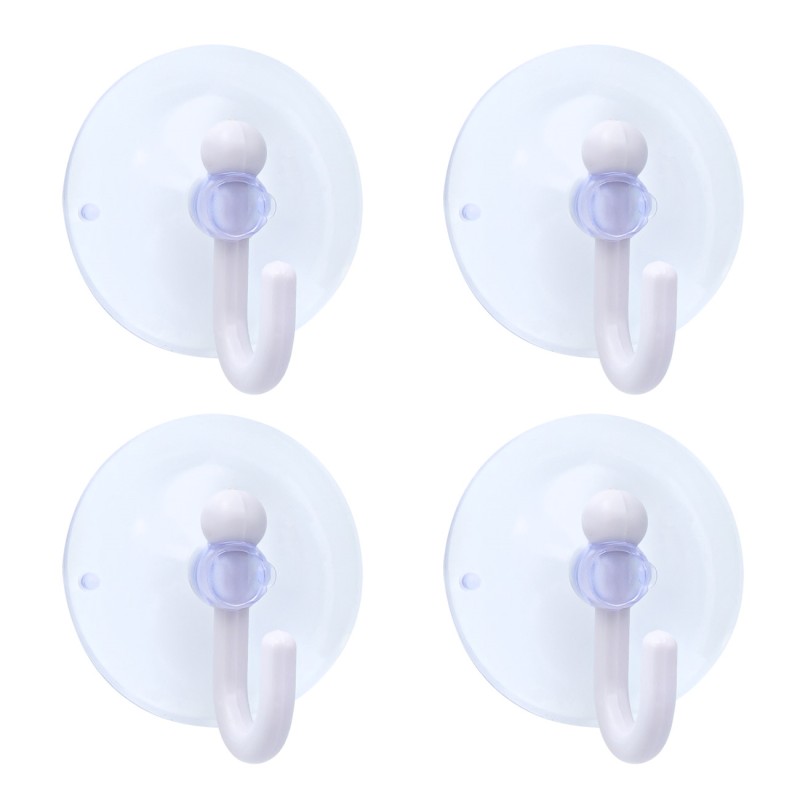 Комплект от 4 броя закачалки - тип кукички, изработени от здрава и устойчива пластмаса в бял цвят с вакуумни вендузи за стена.