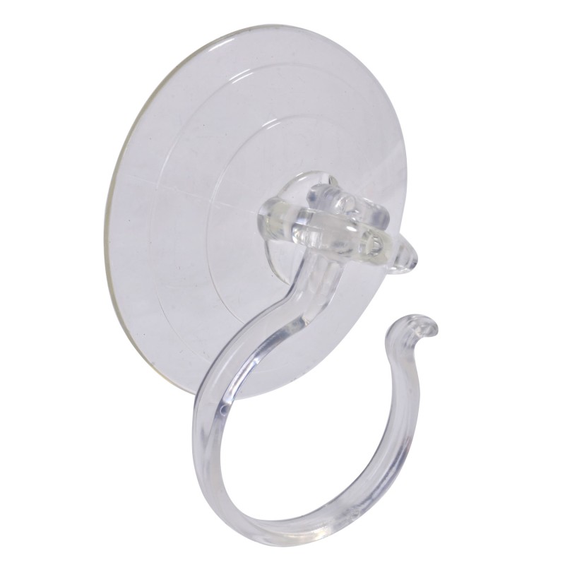 Закачалка за баня - тип кукичка, изработена от здрава прозрачна пластмаса с голяма вакуумна вендуза за отлично закрепване към стена.