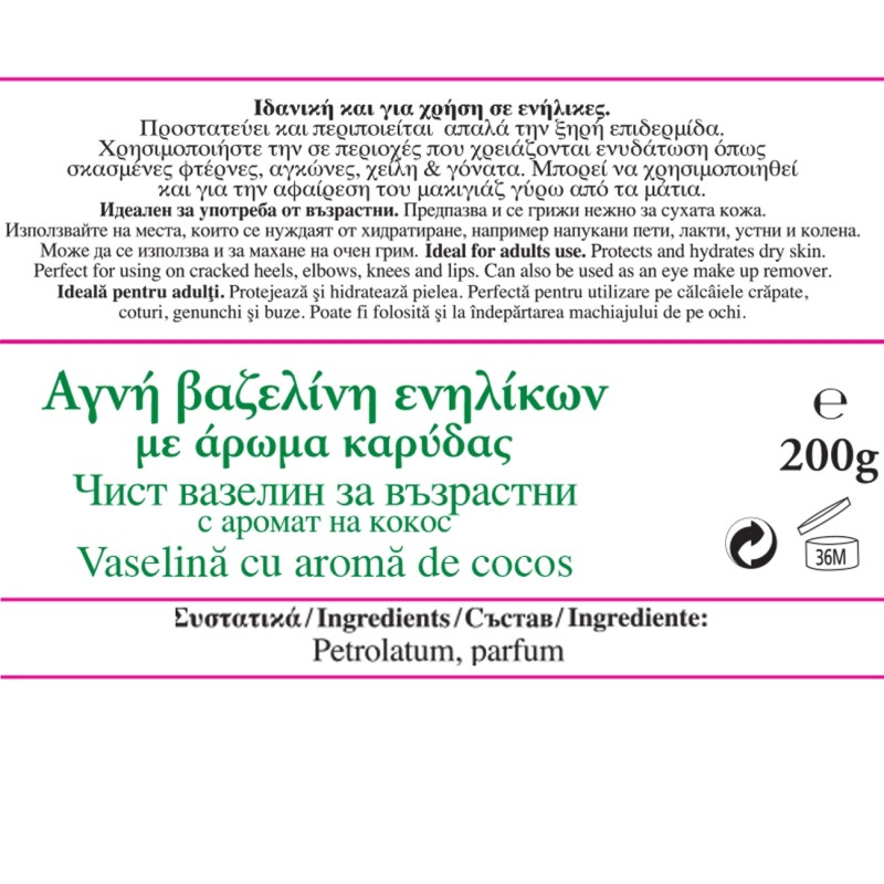 100% чист вазелин за възрастни с аромат на кокос.