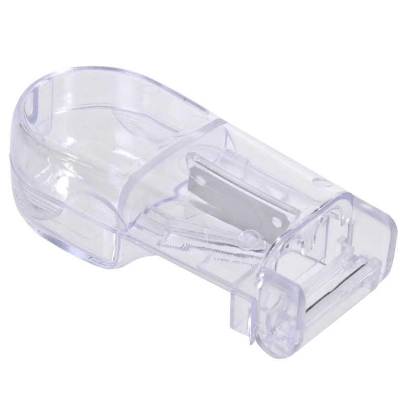 Кутия за хапчета, изработена от качествена прозрачна пластмаса с отделения и малко ножче за по-лесно разделяне на хапчетата.