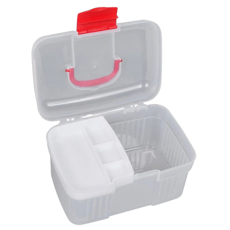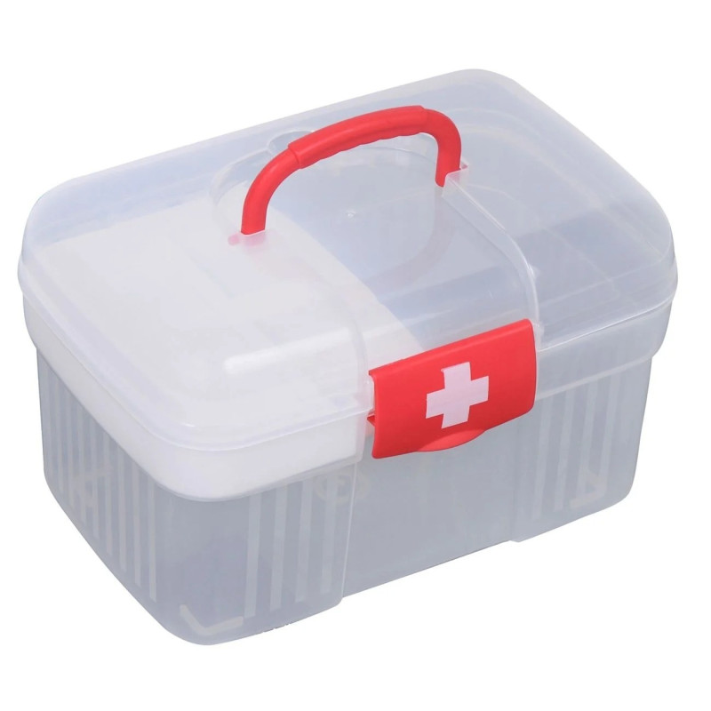 Голямо куфарче за лекарства с отделения, изработено от здрава и устойчива пластмаса в бял цвят.