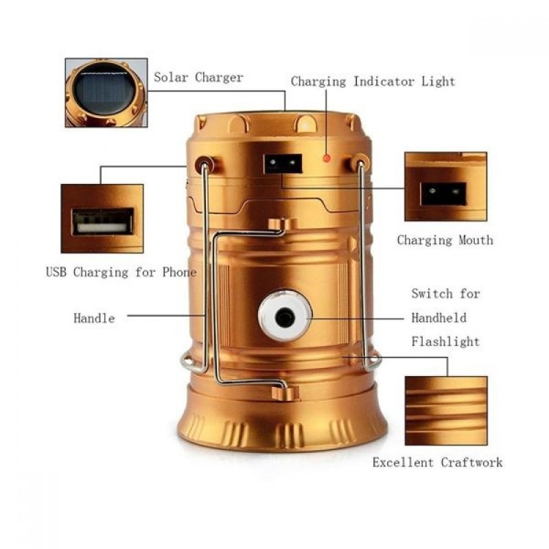 Соларна LED Лампа за къмпинг + Фенер DC-5800T, USB за зареждане на телефон