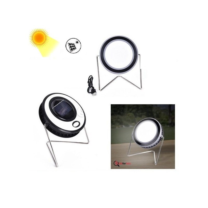 Притежава ярка бяла LED светлина и метална стойка. Лампата може да се върти на 360 градуса. Разполага с презареждаща се соларна батерия, която може да се зарежда и в 220V посредством захранващ кабел (включен в комплекта).