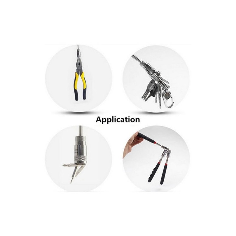 Притежава огъващо се рамо и магнит на върха за лесно захващане на метални елементи.