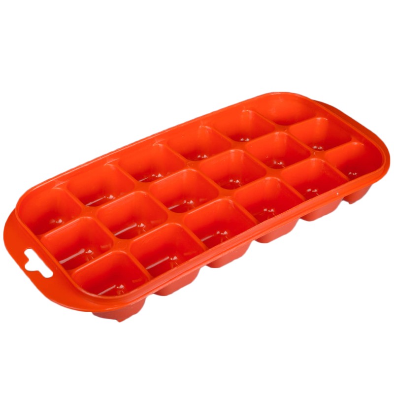 Класическа форма за лед, изработена от здрава и устойчива пластмаса в оранжев цвят с 18 отделения.