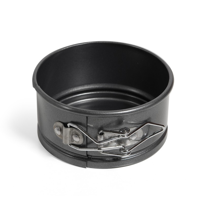 Кръгла метална форма в черен цвят с падащо дъно за печене на кекс, пай, плодови десерти и други.