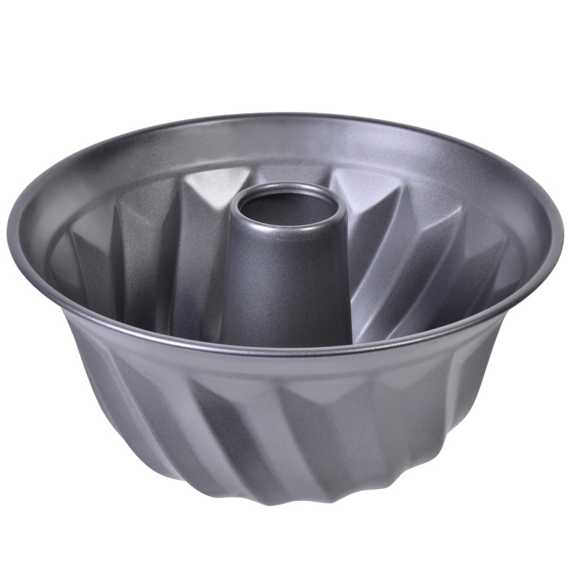 Кръгла метална форма в цвят инокс за печене на кекс или торта.