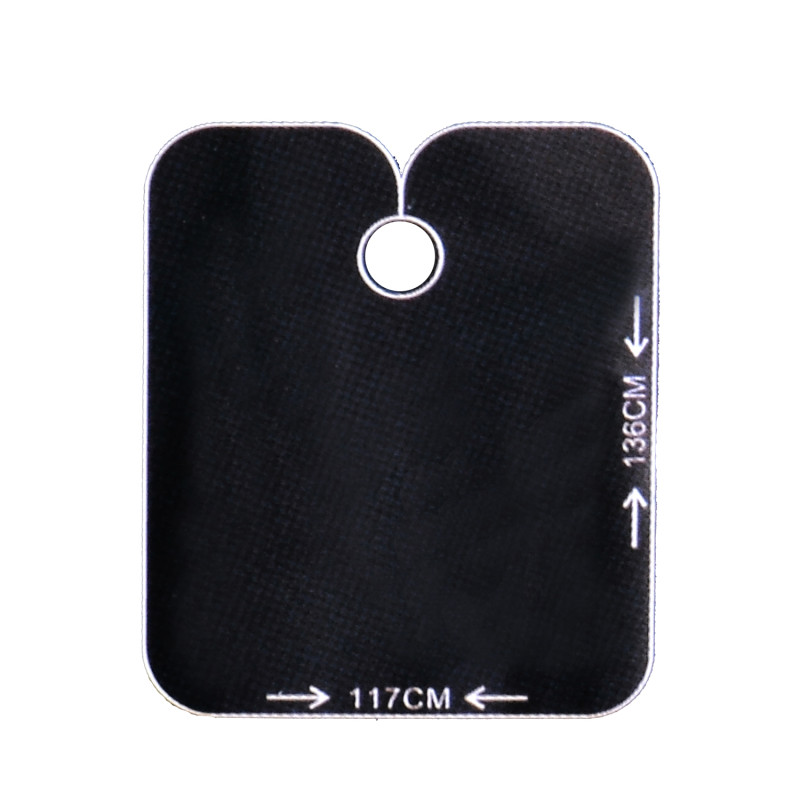 Фризьорска пелерина с правоъгълна форма в черен цвят, изработена от специална материя, която не задържа косми.