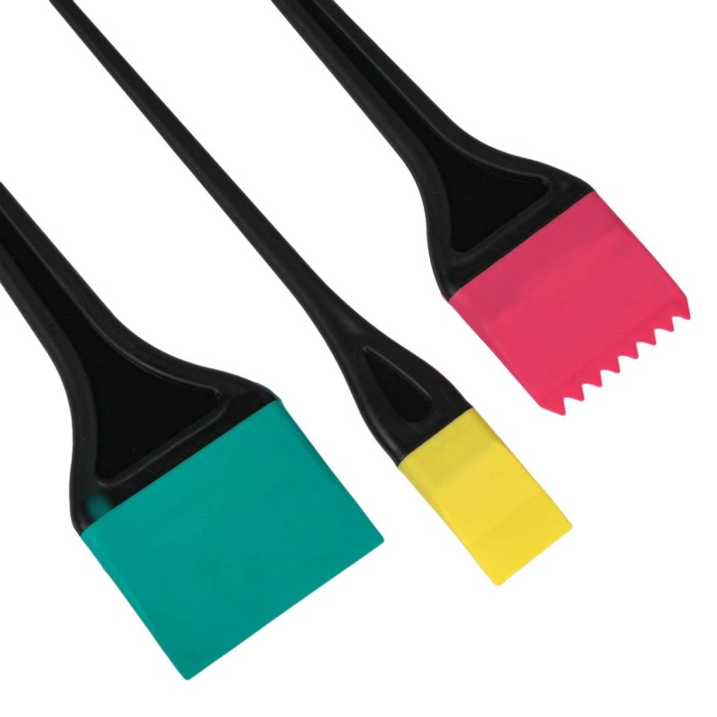 Комплектът включва 2 четки със скосена повърхност - 2 см. и 5.5 см., 3 прави четки - 2 см., 4.5 см. и 5 см. и 1 четка с вълнообразен връх - 4 см.