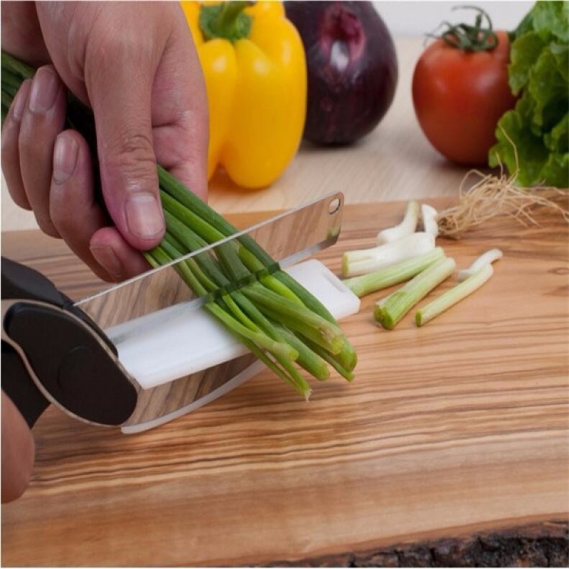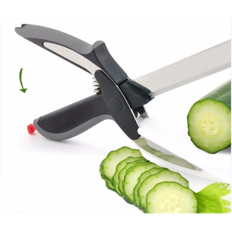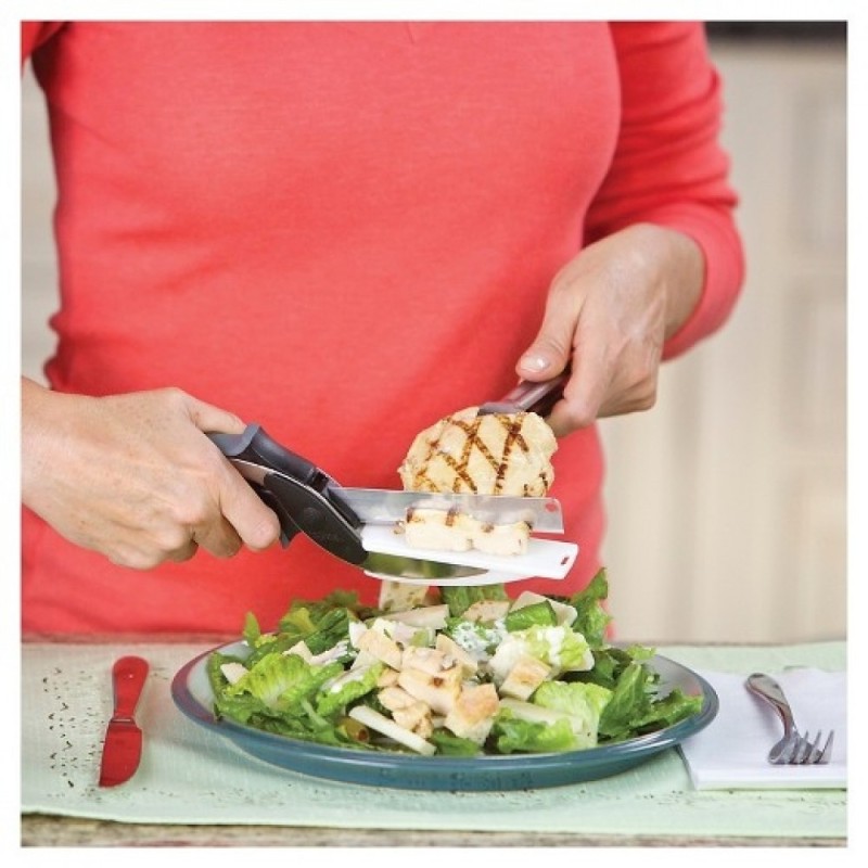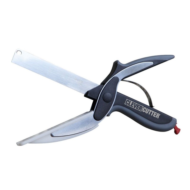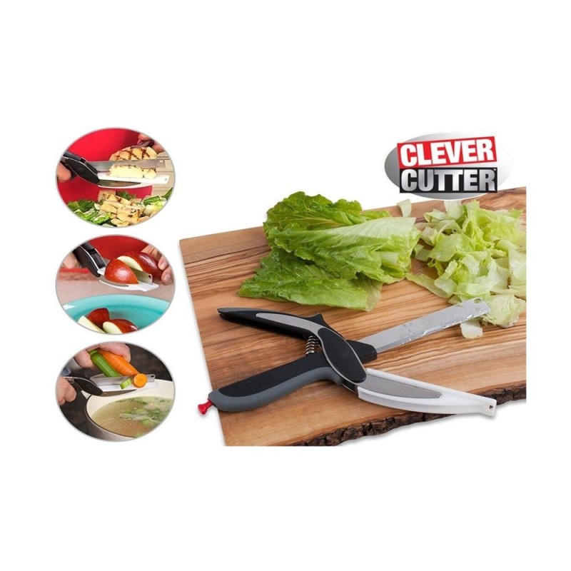 Тайната на ножицата Clever Cutterсе крие в комбинацията на нож + дъска за рязане, с което се постига до 10 пъти по-бъзро нарязване на храната и то директно в съда, за който е предназначена.