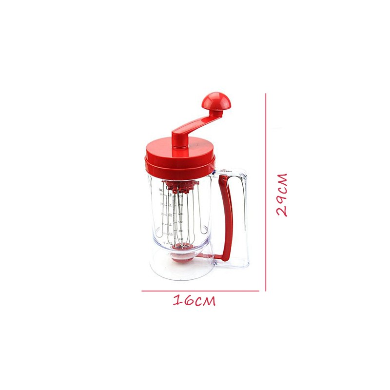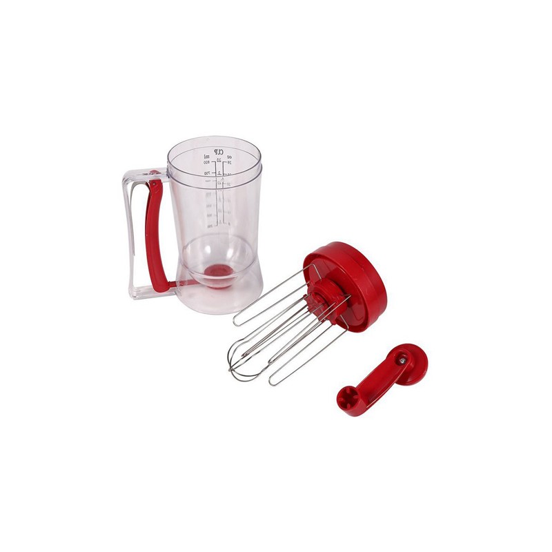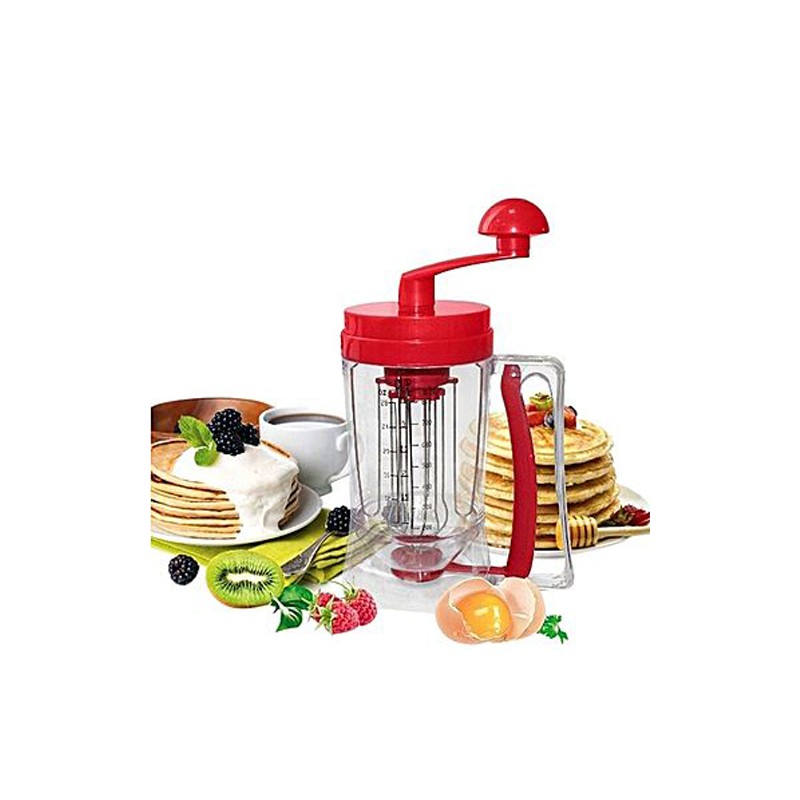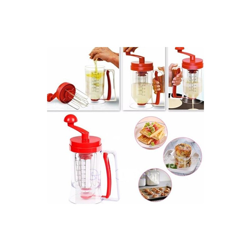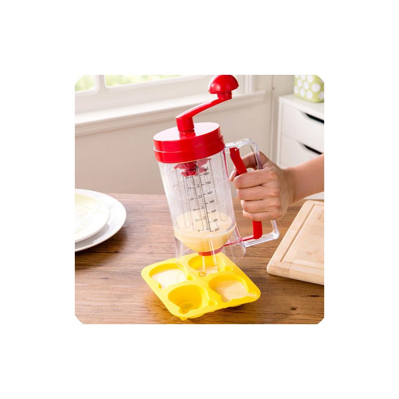 Подгответе сместа и я поставете в каната,с помощта на дръжката на капака разбъркайте до получаване на хомогенна смес и със специалния спусък,може лесно да пропускате нужното количество смес направо върху тигана.