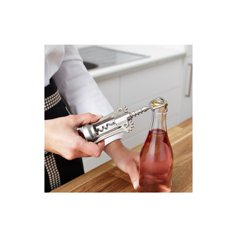 С него не само ще отворите лесно и бързо любимата си бутилка вино, но и можете да го използвате като отварачка на бутилки с метални капачки.