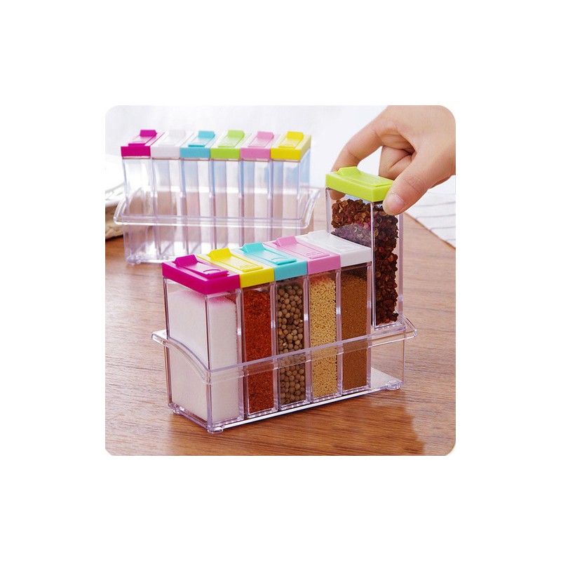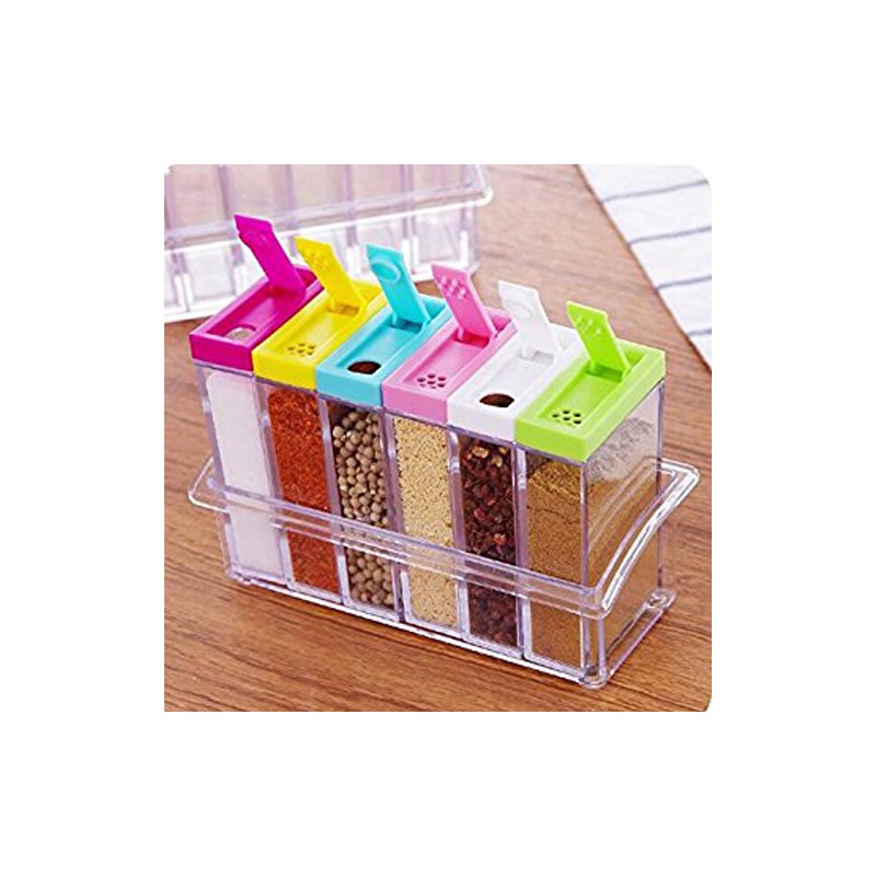 С удоволствие ви представяме това чудесно дизайнерско изпълнение за Вашата кухня - Стилен сет за подправки със 6 броя прозрачни контейнерчета за подправки.