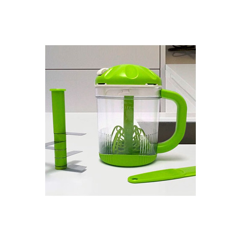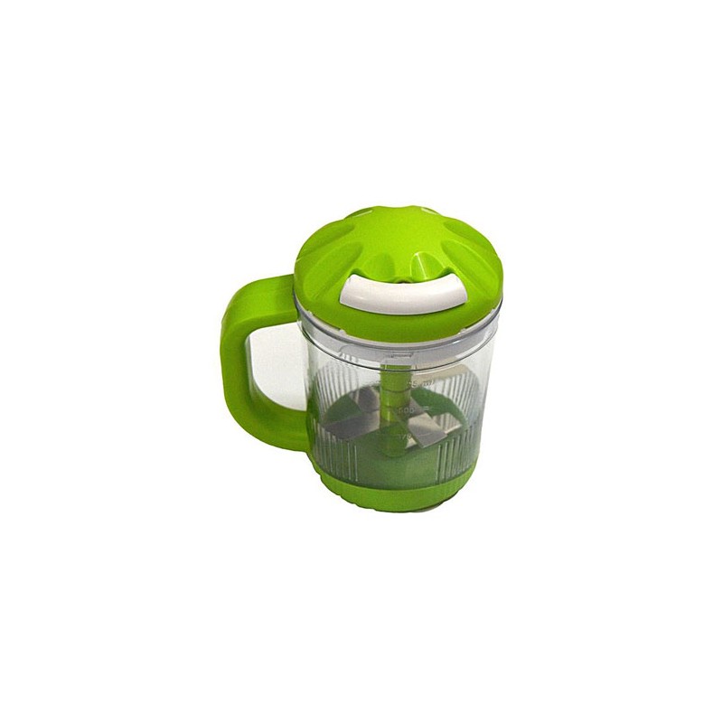 Ръчният чопър има множество функции, може да накълца разнообразие от зеленчуци и сухи ядки и е с допълнително острие за закрепване, което ви позволява да правите шейкове и сметана.