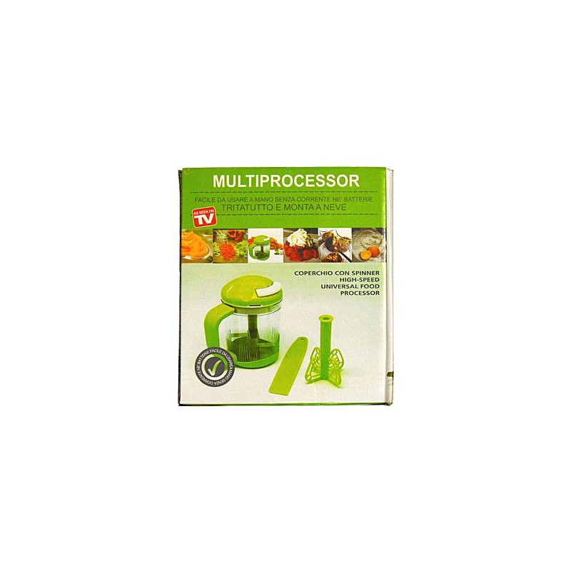 Чопърът е идеален за всяка кухня и е безопасен за миене в съдомиялна машина, има нож за рязане от неръждаема стомана.