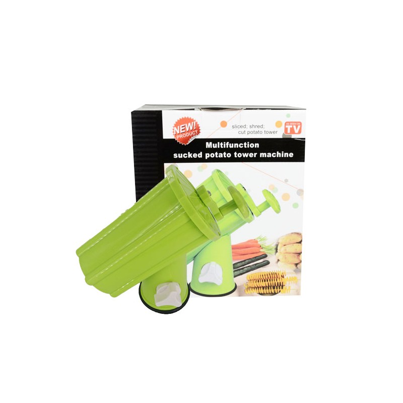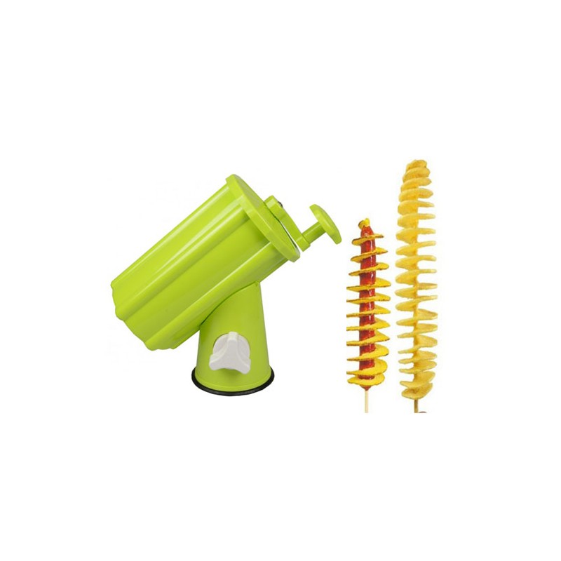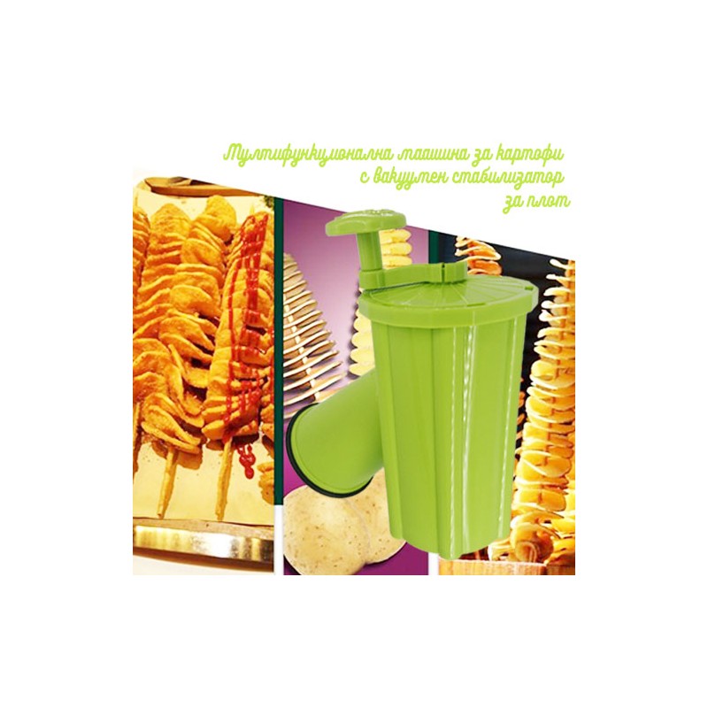 Машина за картоф на спирала - Лазерно заточените ножове позволяват обработката на един картоф – нарязване и нанизване на дървено шишче да става бързо, а получената атрактивна форма ще впечатли Вашите приятели и клиенти.