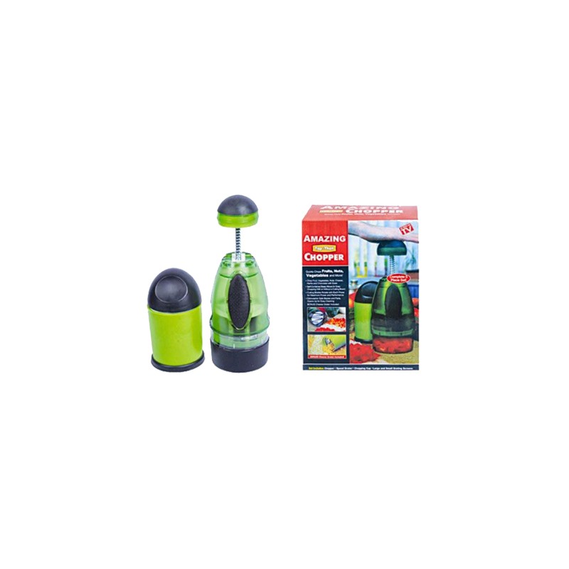 Чопърът реже с лекота зеленчуци, ядки, плодове, сирене, подправки, шоколад и други. С всеки натиск храната става все по-фина, а работата с него е бърза и лесна.