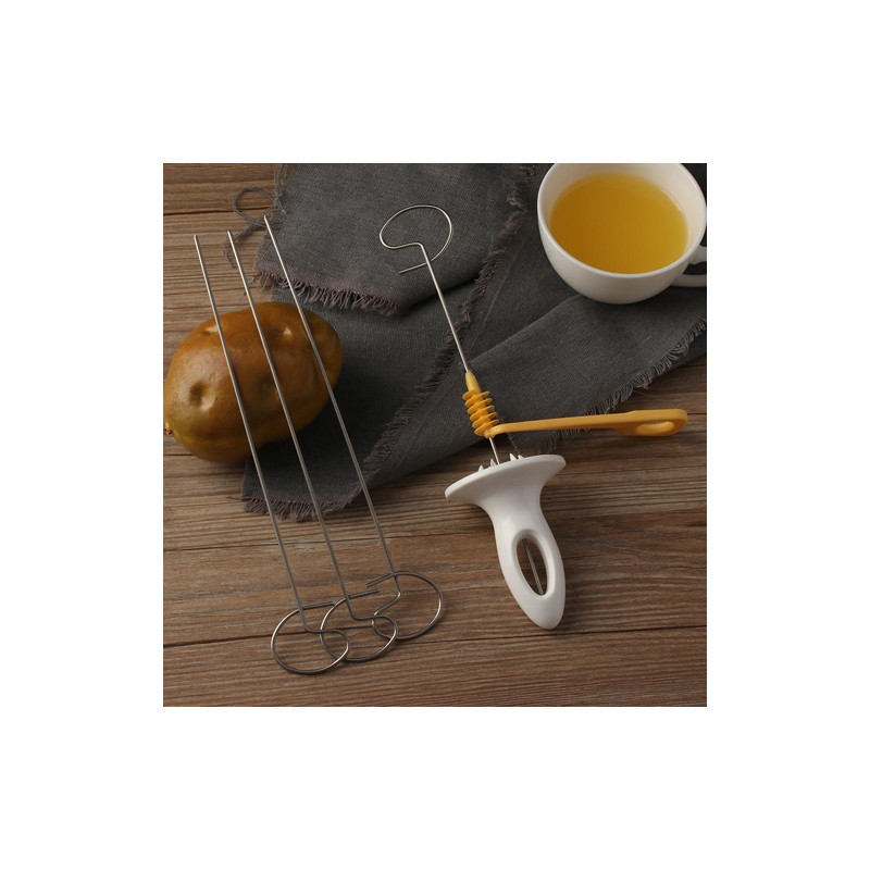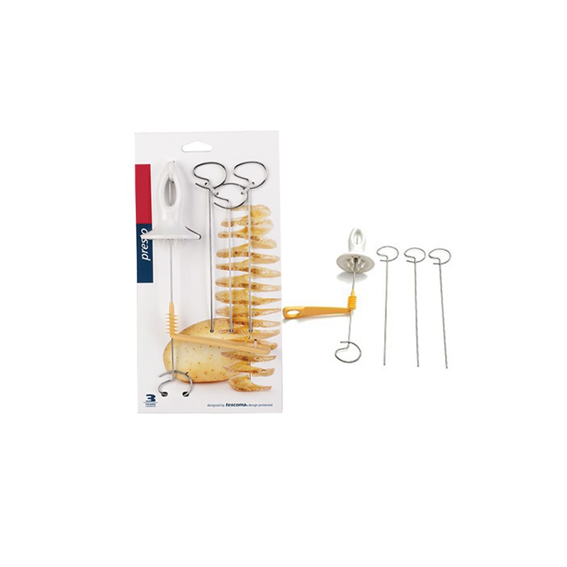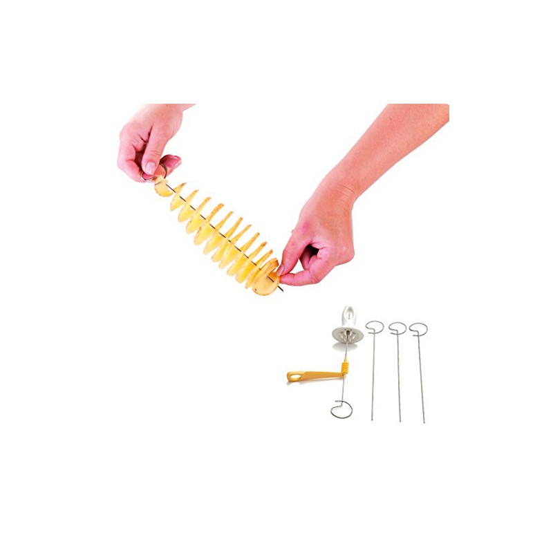 Комплектът включва 4 шиша от неръждаема стомана за пържене или печене на картофени спирали!