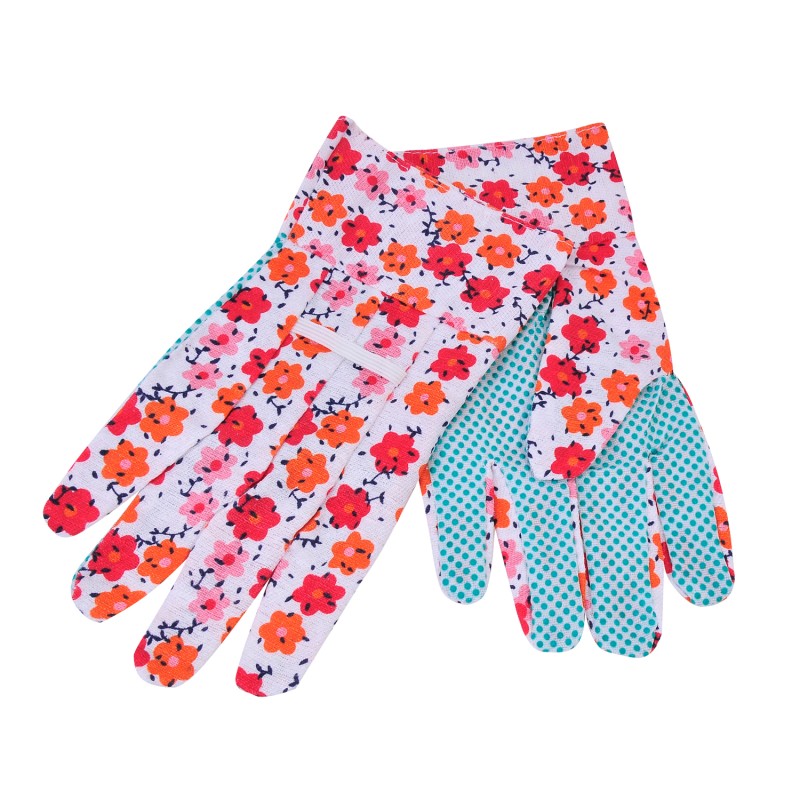 Гъвкави и удобни градински ръкавици, изработени от памук с тематичен принт на оранжеви цветя.