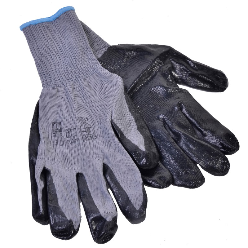 Градински ръкавици, изработени от памук в сив цвят с покритие латекс.