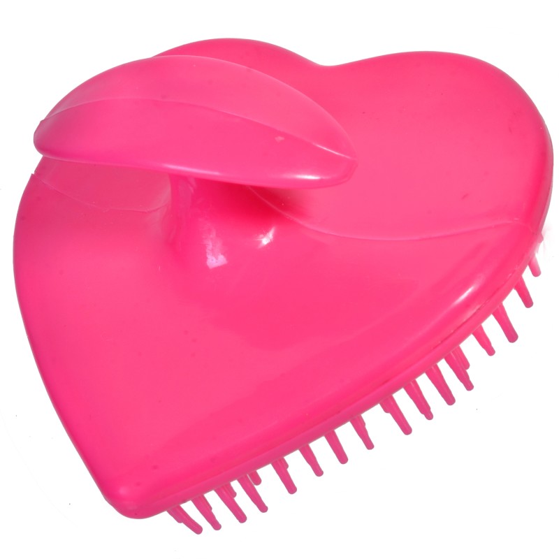 Четка за коса във формата на сърце, изработена от здрава пластмаса в розов цвят.
