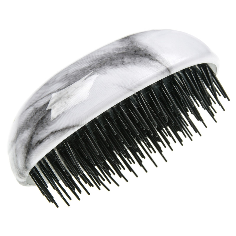 Овална четка за коса, изработена от качествена и здрава пластмаса с мраморен десен.