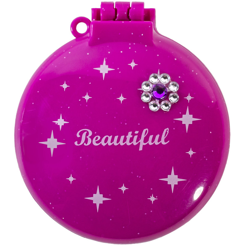 Четка за коса джобен размер в комплект с огледало, изработена от плътна и устойчива пластмаса в цикламен цвят.