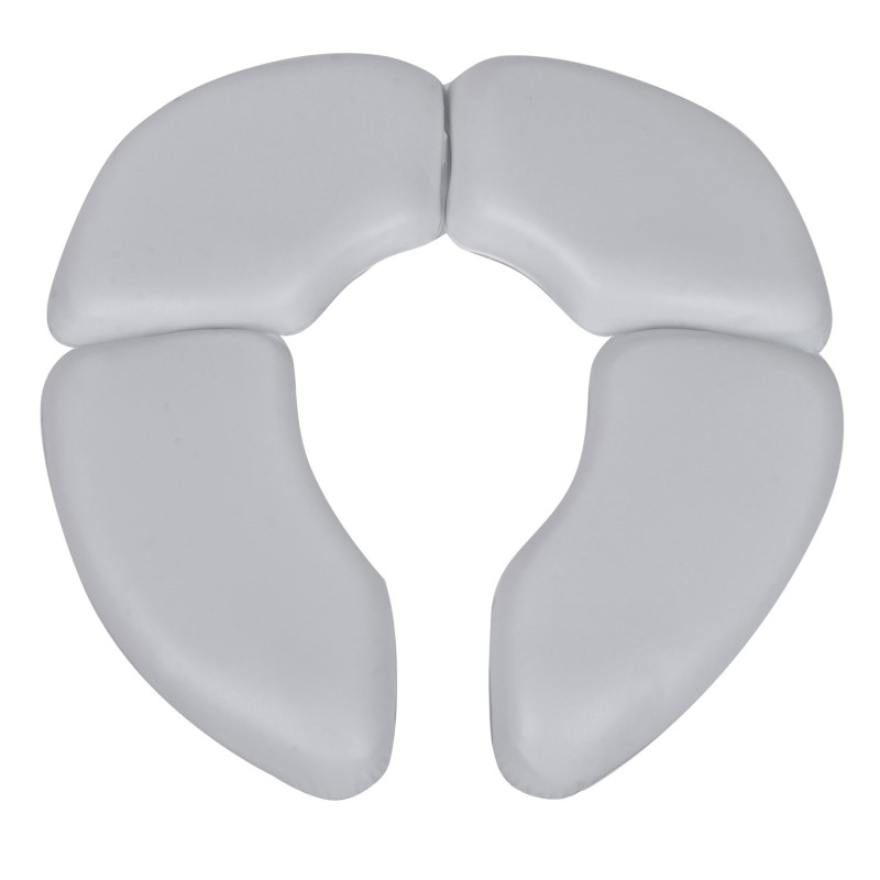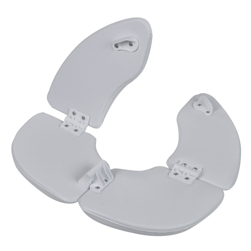 Детска сгъваема седалка за тоалетна, изработена от качествена и трайна пластмаса в бял цвят с меки възглавнички.
