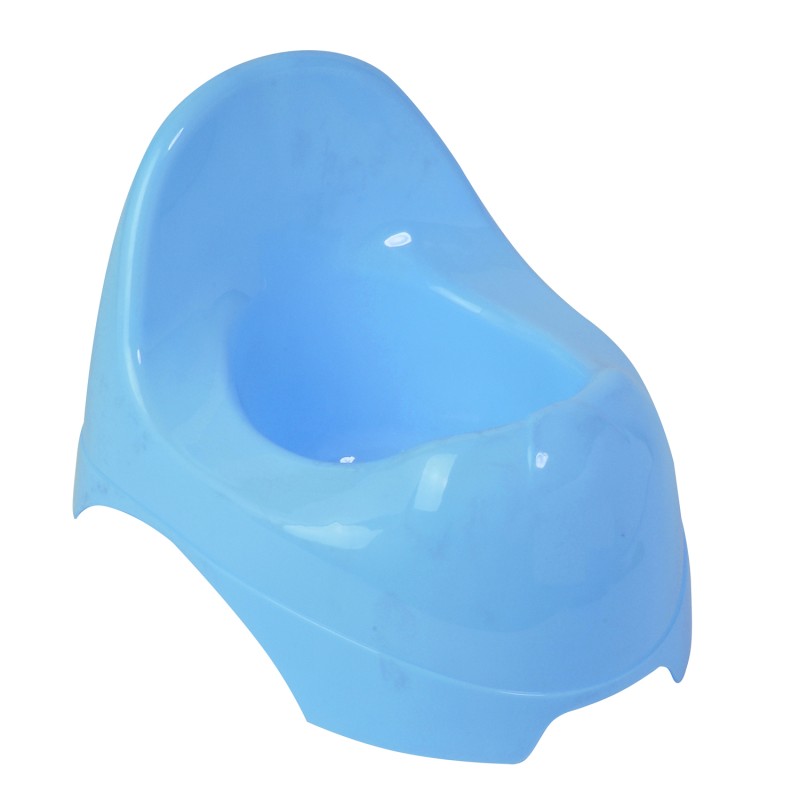 Бебешко гърне с облегалка, изработено от здрава и безвредна пластмаса в светло син цвят.