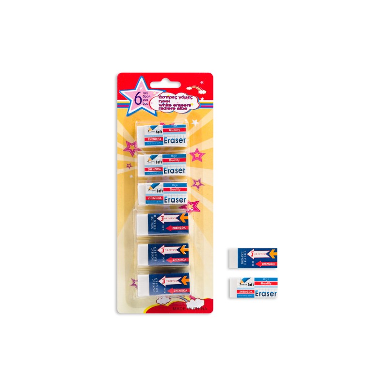 Комплект от 6 броя бели гуми за молив, изработени от естествени материали без съдържание на пластмаса.