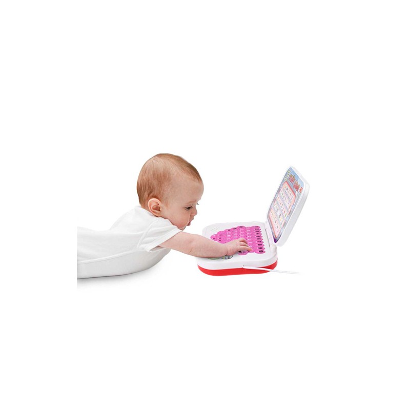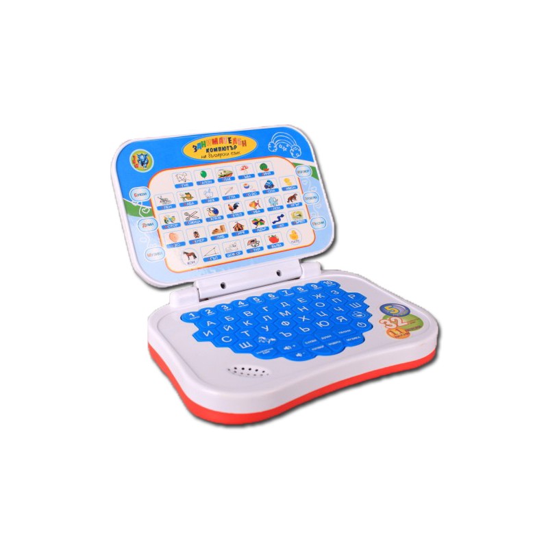 По интерактивен начин лаптопът за деца, обучава детето като в същото време го изпитва за азбуката, цифрите и имената на предмети, започващи с всяка буква от азбуката!