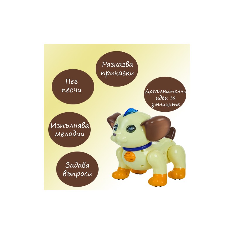 Той пее песни, разказва приказки, изпълнява мелодии, задава въпроси на детето , разказва смешки и гатанки и още много други!