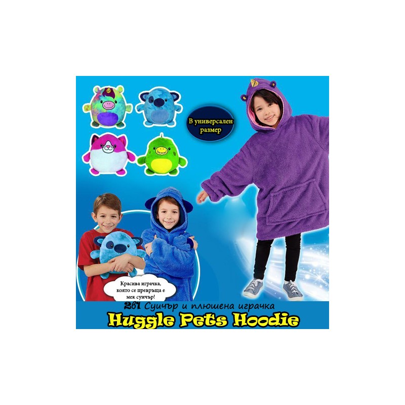 Той се съхранява като плюлена играчка, но се разгъва в ултра мек и супер топъл суичър! Huggle