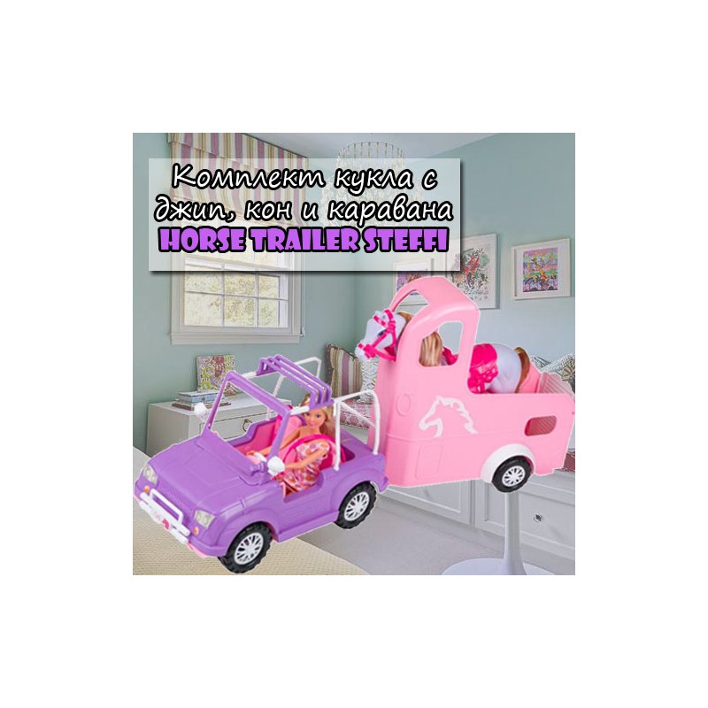 Красивата кукла Стефи пристига при Вас с джип и любимият си кон в каравана за транспортиране.