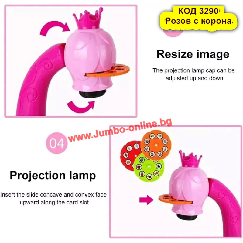 Захранване на проектора: 3 батерии 1.5V тип AA (не са включени в комплекта).